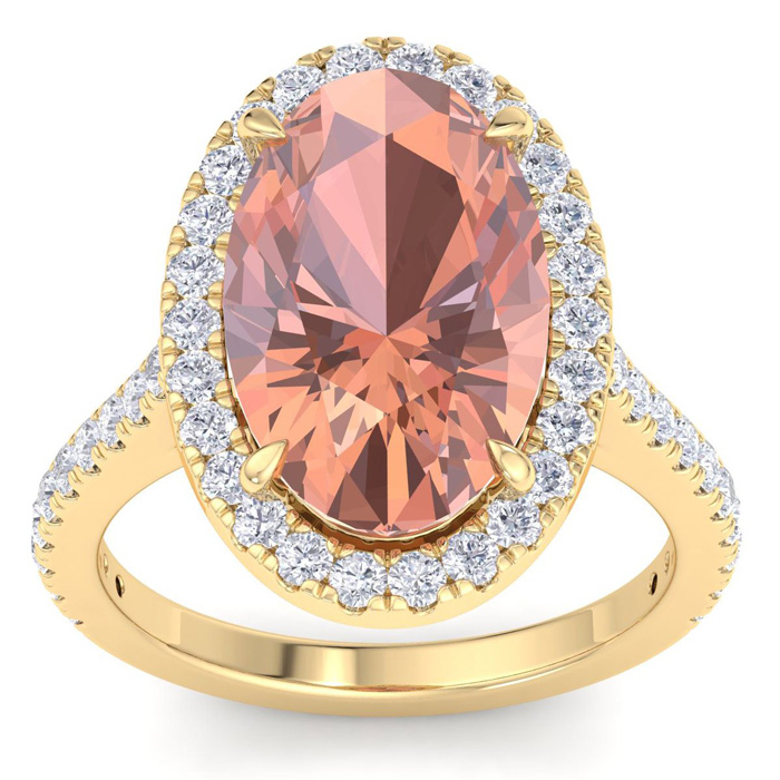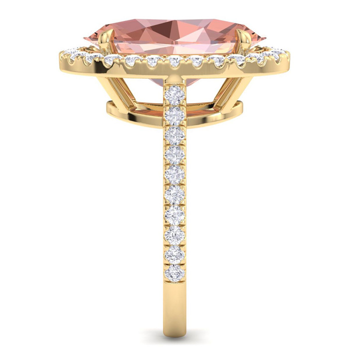 8 1/2 Carat Oval Shape Morganite and Halo Diamond Ring In 14K Yellow Gold