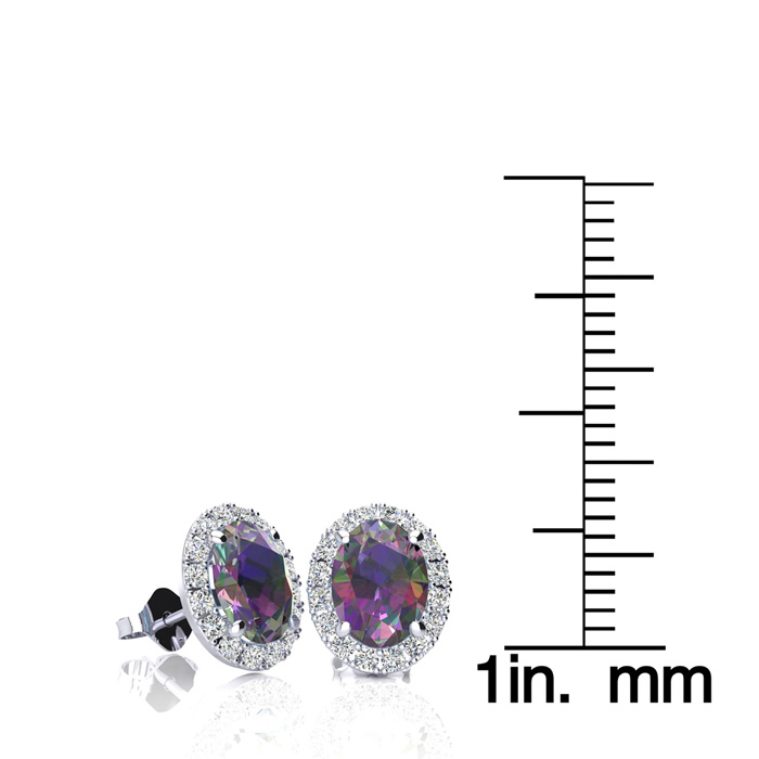 2 1/4 Carat Oval Shape Mystic Topaz and Halo Diamond Earrings In Sterling Silver
