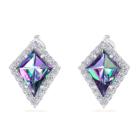 2 1/5 Carat Kite Shape Mystic Topaz and Diamond Earrings In 14K White Gold