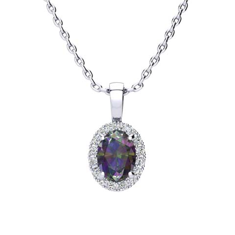 1-1/2 Carat Oval Shape Mystic Topaz Necklace With Diamond Halo In 14 Karat White Gold, 18 Inches