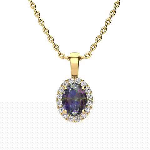 1-1/2 Carat Oval Shape Mystic Topaz Necklace With Diamond Halo In 14 Karat Yellow Gold, 18 Inches