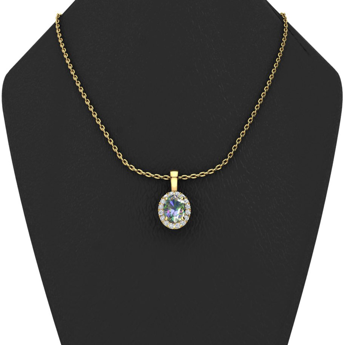 1-1/2 Carat Oval Shape Mystic Topaz Necklace With Diamond Halo In 14 Karat Yellow Gold, 18 Inches