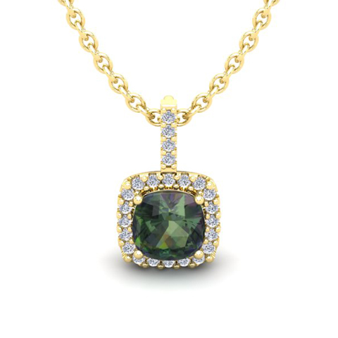 1-1/3 Carat Cushion Shape Mystic Topaz Necklace With Diamond Halo In 14 Karat Yellow Gold, 18 Inches