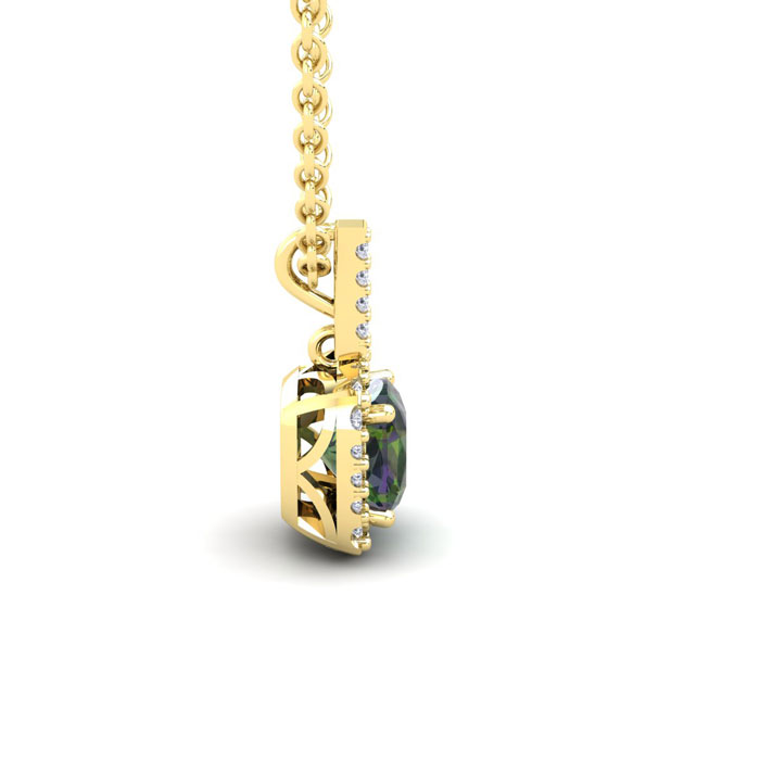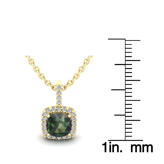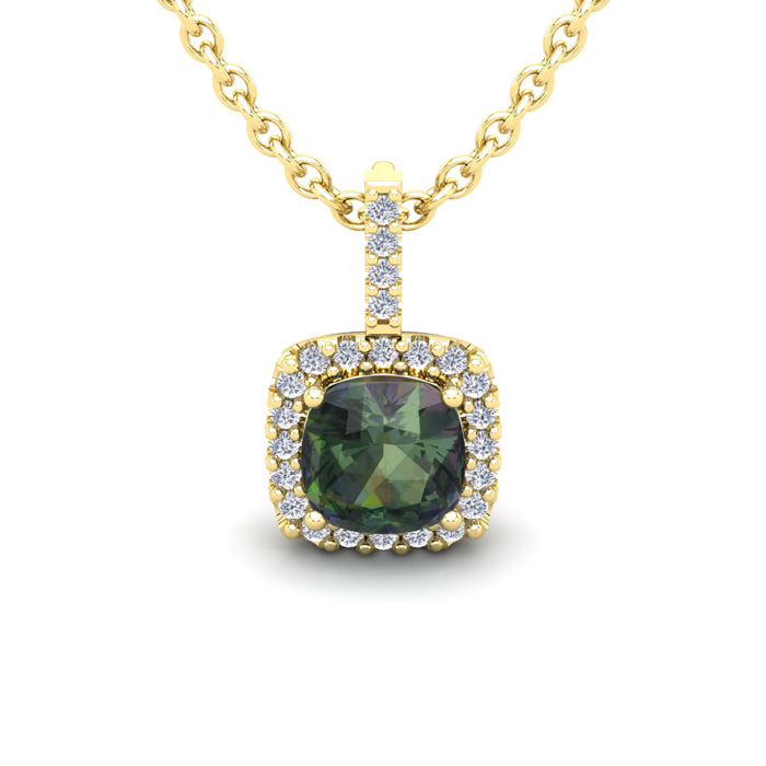 1-1/3 Carat Cushion Shape Mystic Topaz Necklace With Diamond Halo In 14 Karat Yellow Gold, 18 Inches