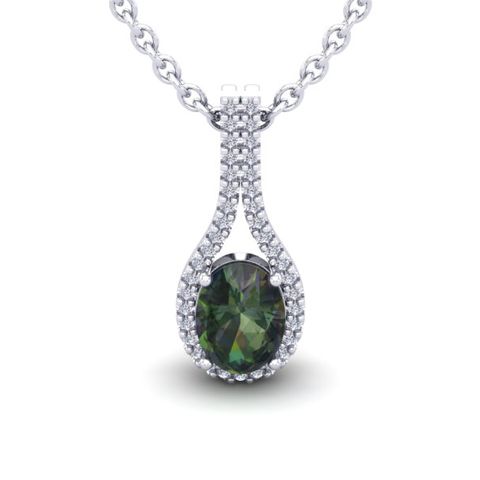 1-1/4 Carat Oval Shape Mystic Topaz Necklace With Diamond Halo 14 Karat White Gold, 18 Inches