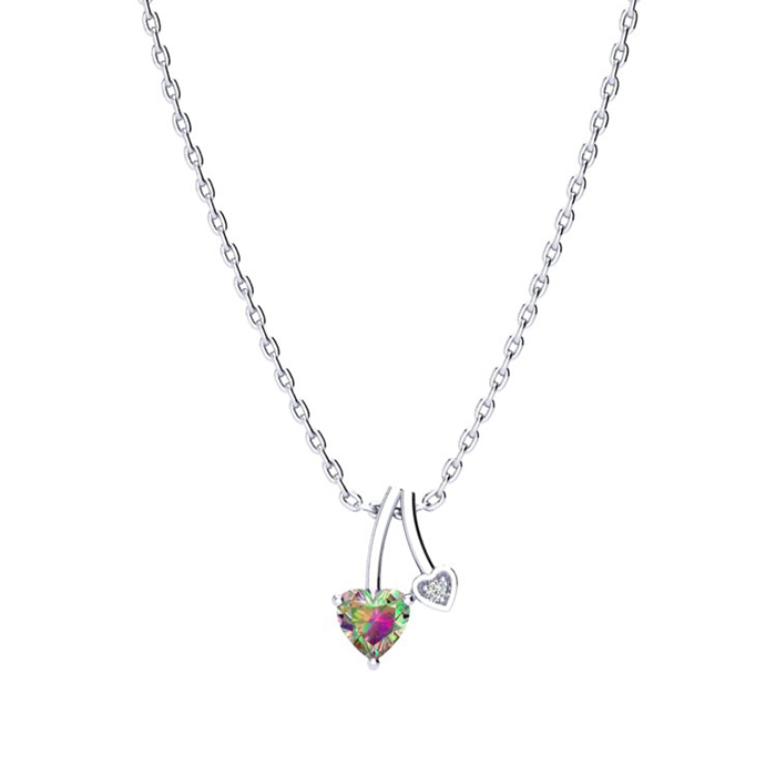 1/2 Carat Heart Shaped Mystic Topaz and Diamond Necklace In Sterling Silver With 18 Inch Chain