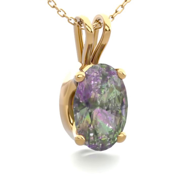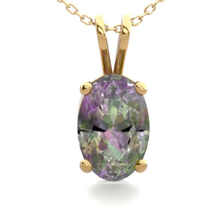 1/2 Carat Oval Shape Mystic Topaz Necklace In 14 Karat Yellow Gold Over Sterling Silver, 18 Inches