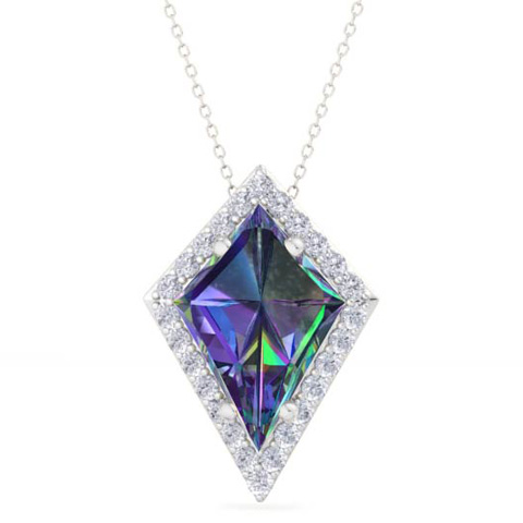 1-3/4 Carat Kite Shape Mystic Topaz Necklace And Diamond Halo In 14 Karat White Gold, 18 Inches