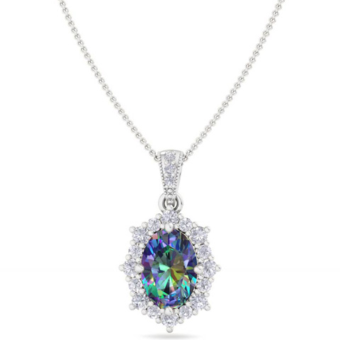 1-3/4 Carat Oval Shape Mystic Topaz Necklace With Diamond Halo In 14 Karat White Gold, 18 Inches