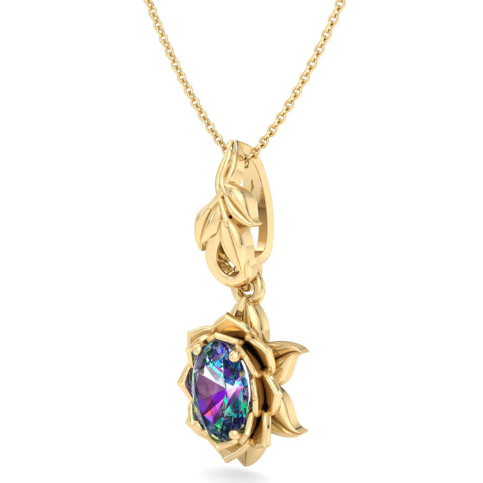 Retrograde Birthstones™ 1 Carat Oval Shape Mystic Topaz Necklace In 14 Karat Yellow Gold, 18 Inches