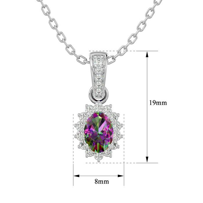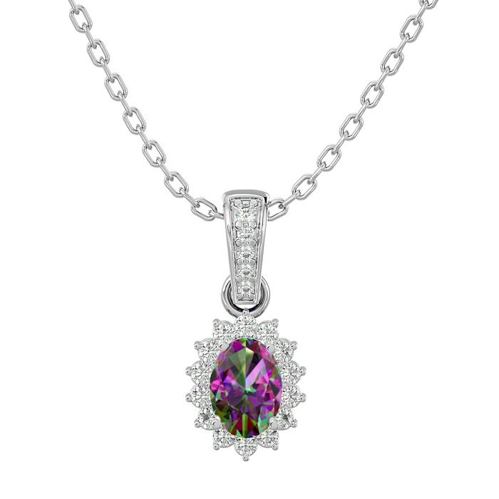 1 Carat Oval Shape Mystic Topaz Necklace With Diamond Halo In 14 Karat White Gold, 18 Inches