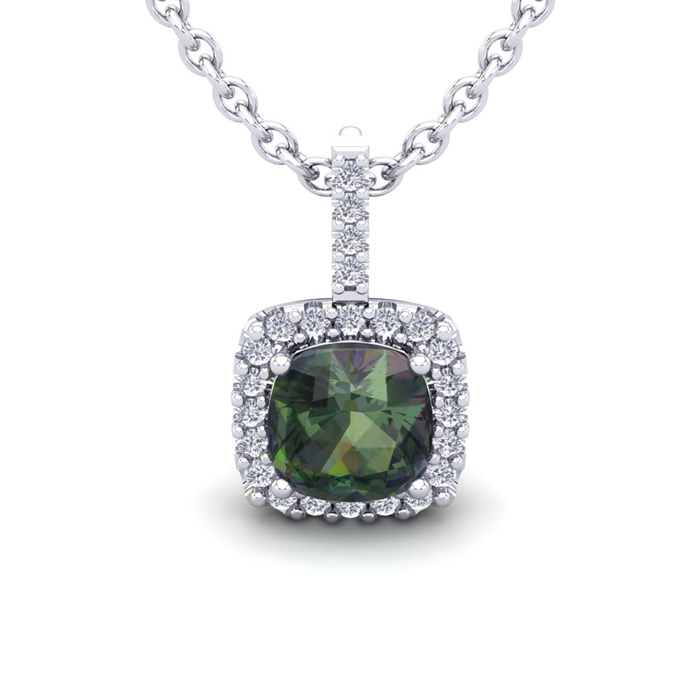 2-1/2 Carat Cushion Shape Mystic Topaz Necklace With Diamond Halo In 14 Karat White Gold, 18 Inches