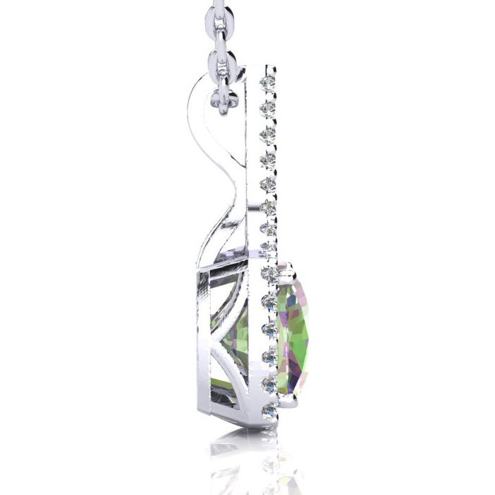 2-1/2 Carat Cushion Shape Mystic Topaz Necklace With Diamond Halo In 14 Karat White Gold, 18 Inches