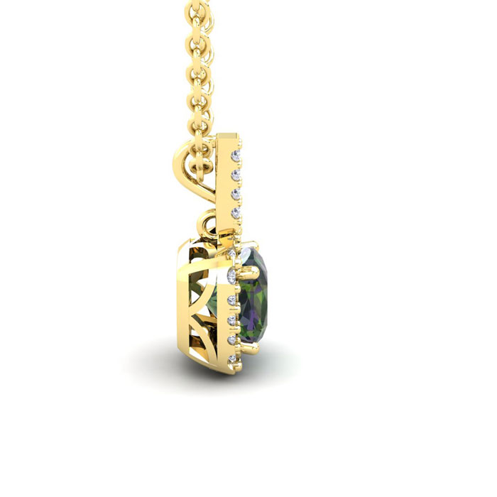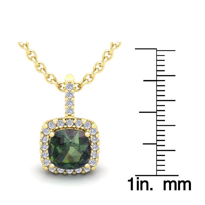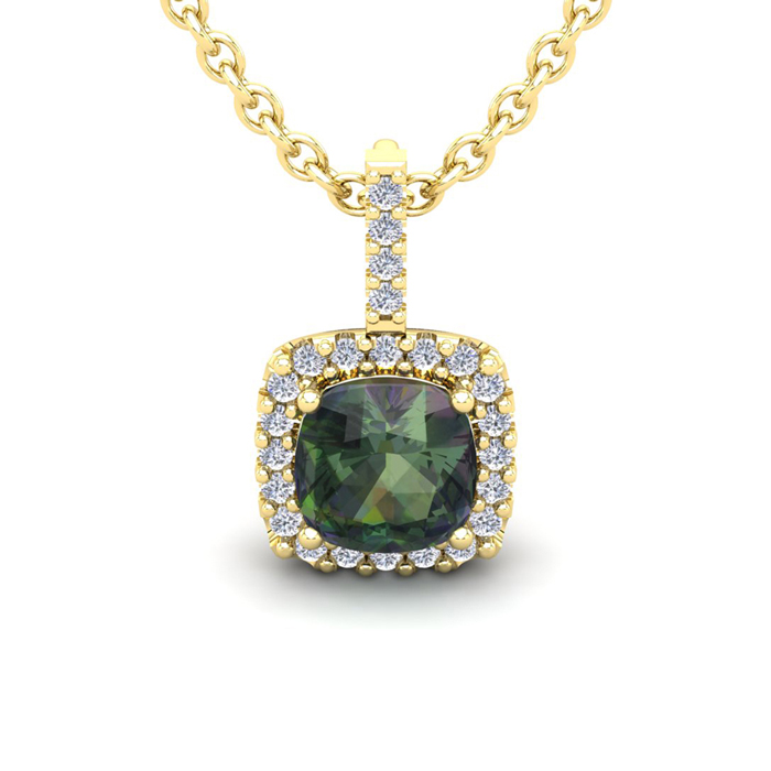 2-1/2 Carat Cushion Shape Mystic Topaz Necklace With Diamond Halo In 14 Karat Yellow Gold, 18 Inches