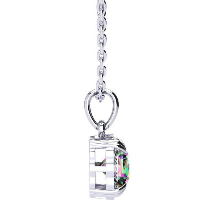 2-1/2 Carat Cushion Shape Mystic Topaz Necklace With Diamonds In 10 Karat White Gold, 18 Inches
