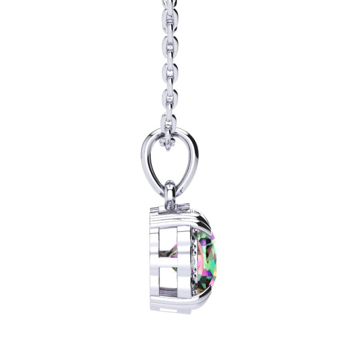 2 Carat Cushion Cut Mystic Topaz and Diamond Necklace In Sterling Silver With 18 Inch Chain