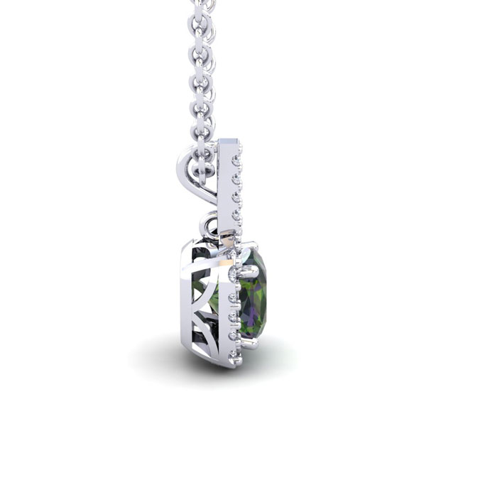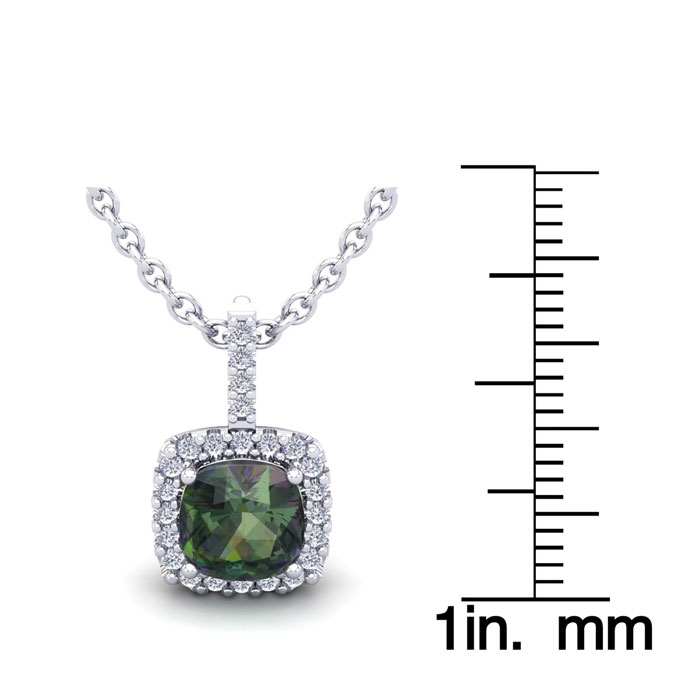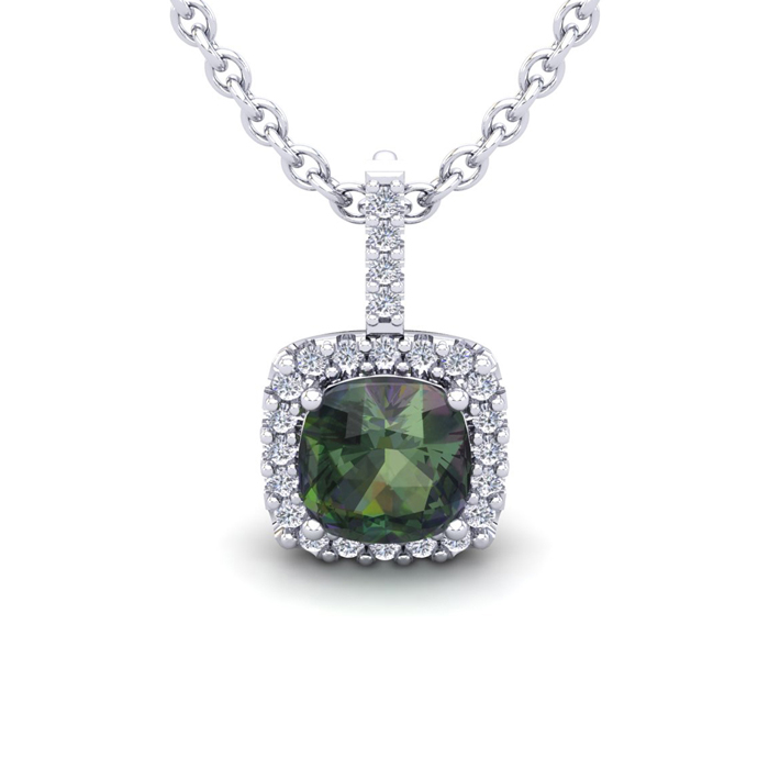 2 Carat Cushion Shape Mystic Topaz Necklace and Diamond Halo In 14 Karat White Gold, 18 Inches