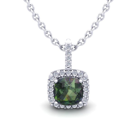 2 Carat Cushion Shape Mystic Topaz Necklace and Diamond Halo In 14 Karat White Gold, 18 Inches