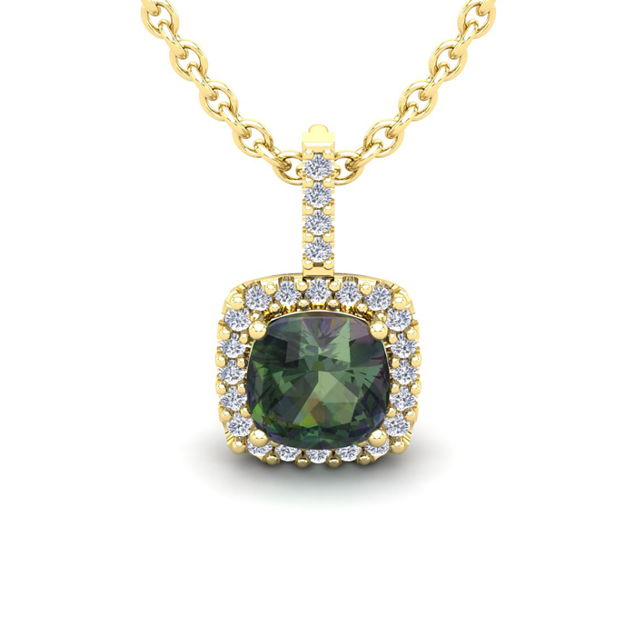 2 Carat Cushion Shape Mystic Topaz Necklace and Diamond Halo In 14 Karat Yellow Gold, 18 Inches