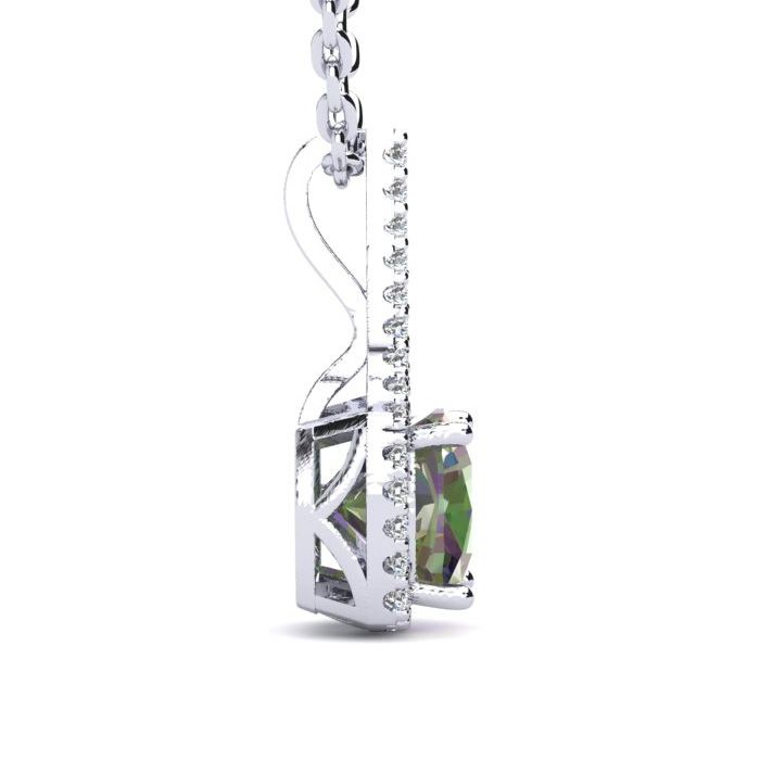 2 Carat Cushion Shape Mystic Topaz Necklace With Diamond Halo In 14 Karat White Gold, 18 Inches