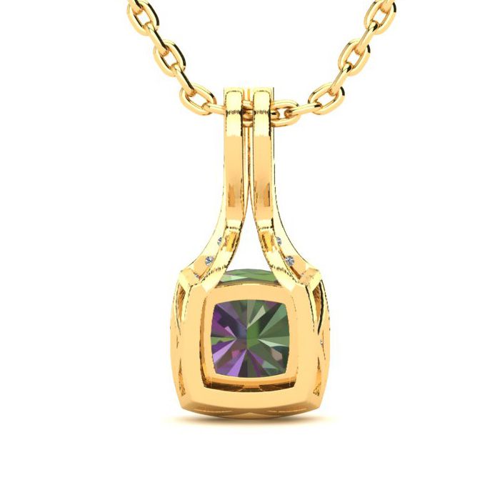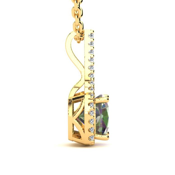 2 Carat Cushion Shape Mystic Topaz Necklace With Diamond Halo In 14 Karat Yellow Gold, 18 Inches