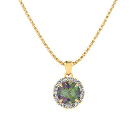 3/4 Carat Round Shape Mystic Topaz Necklace With Diamond Halo In 14 Karat Yellow Gold, 18 Inches
