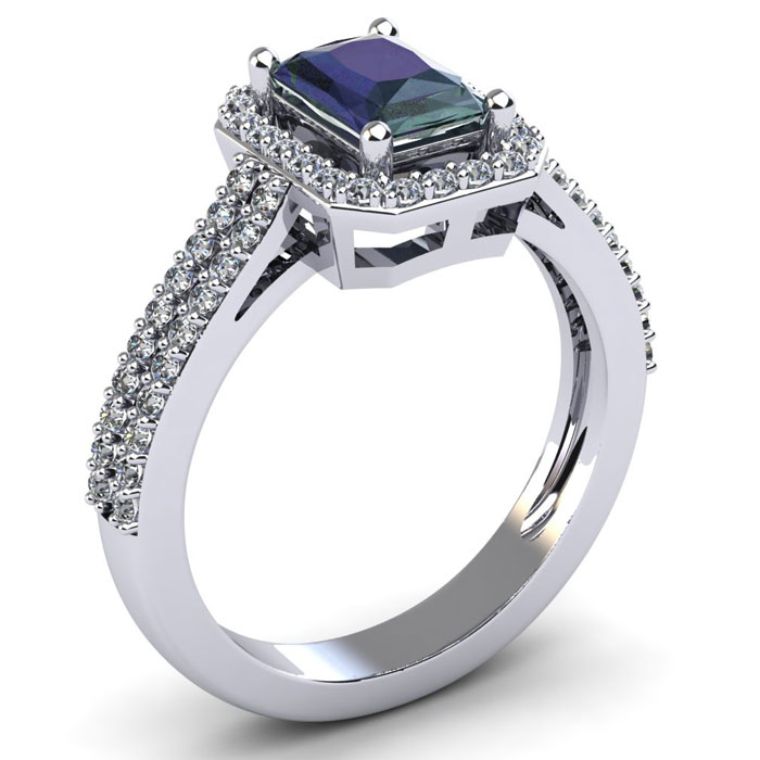 1 1/2 Carat Octagon Shape Mystic Topaz and Halo Diamond Ring In Sterling Silver