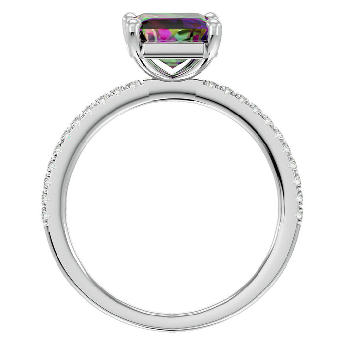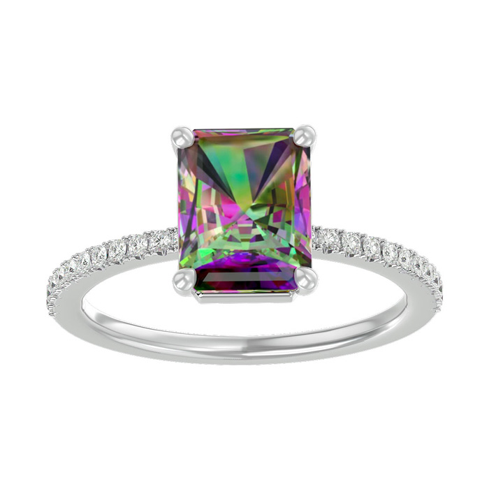 1-1/2 Carat Octagon Shape Mystic Topaz Ring and Diamonds In 14 Karat White Gold