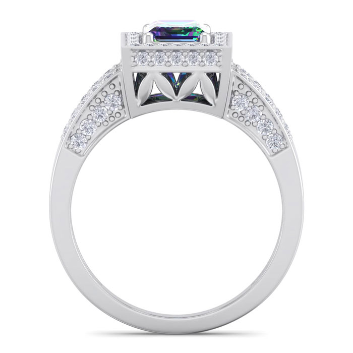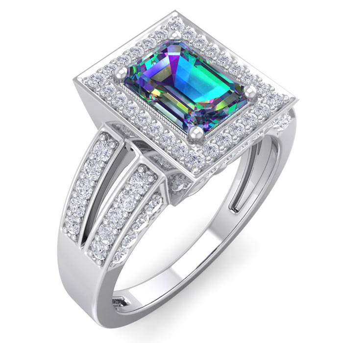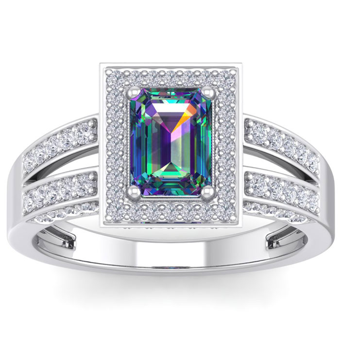 1-1/2 Carat Octagon Shape Mystic Topaz With Diamond Halo In 14 Karat White Gold