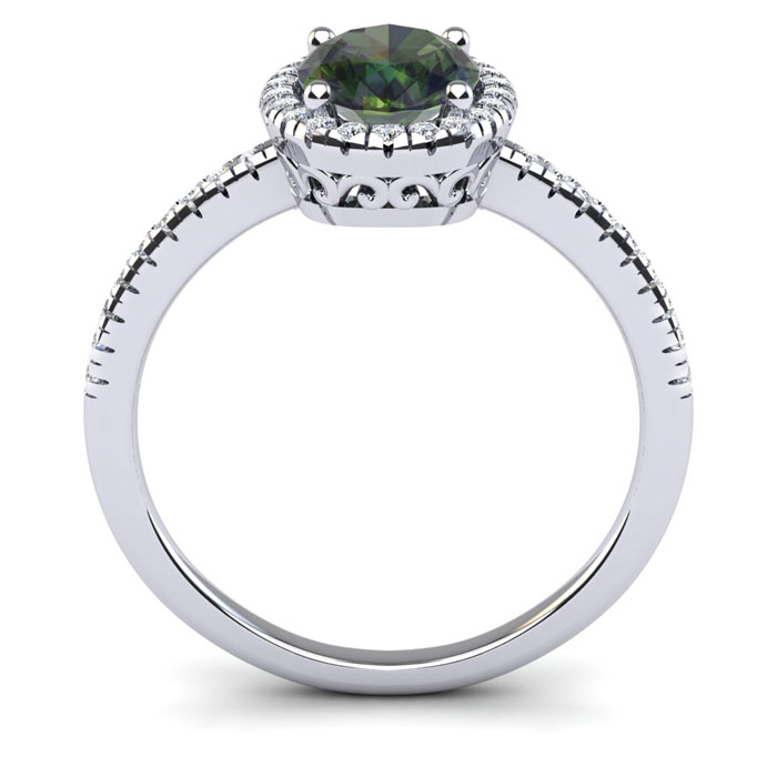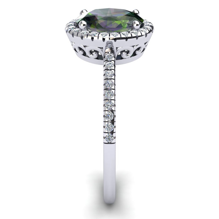 1 1/2 Carat Oval Shape Mystic Topaz and Halo Diamond Ring In Sterling Silver