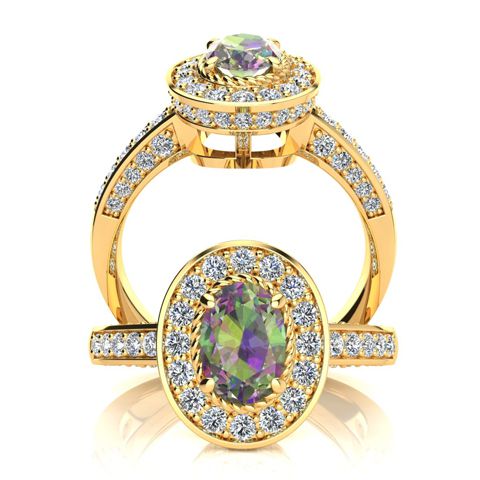 1-1/2 Carat Oval Shape Mystic Topaz Ring With Diamond Halo In 14 Karat Yellow Gold