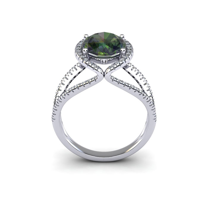 1-1/2 Carat Oval Shape Mystic Topaz Ring With Fancy Diamond Halo In 14 Karat White Gold