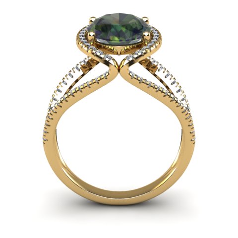 1-1/2 Carat Oval Shape Mystic Topaz Ring With Fancy Diamond Halo In 14 Karat Yellow Gold
