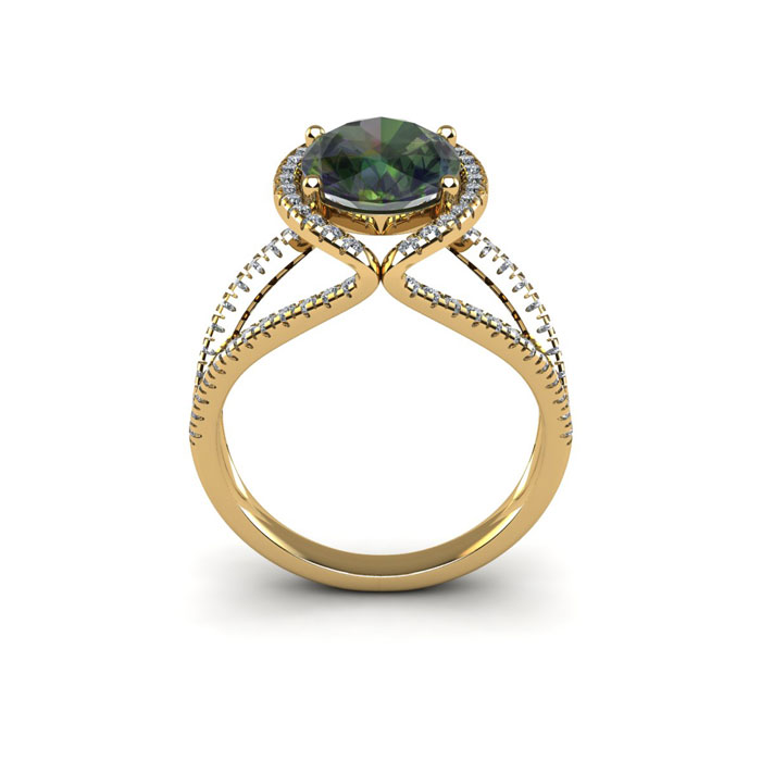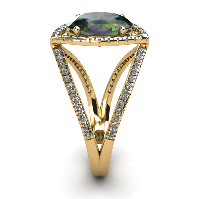 1-1/2 Carat Oval Shape Mystic Topaz Ring With Fancy Diamond Halo In 14 Karat Yellow Gold