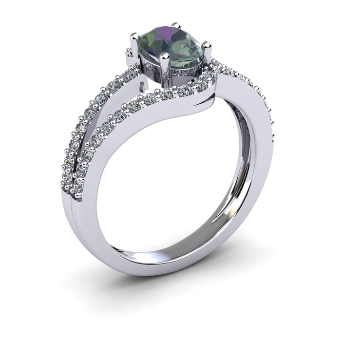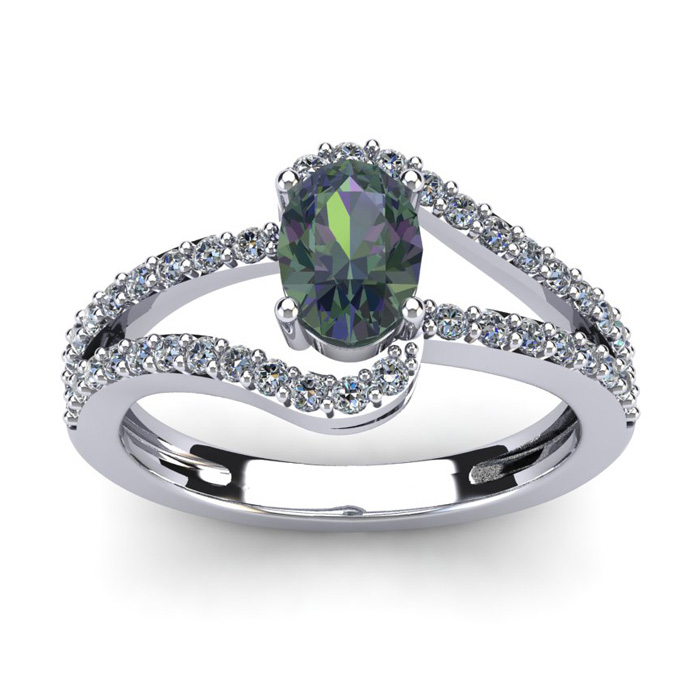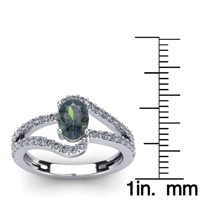 1-1/2 Carat Oval Shape Mystic Topaz Ring With Fancy Diamond Swirls In 14 Karat White Gold