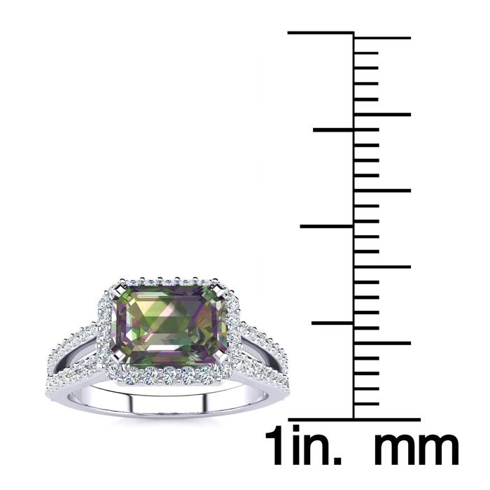 1-1/3 Carat Octagon Shape Mystic Topaz Ring With Diamond Halo In 14 Karat White Gold