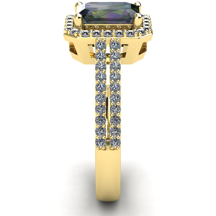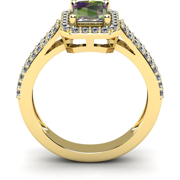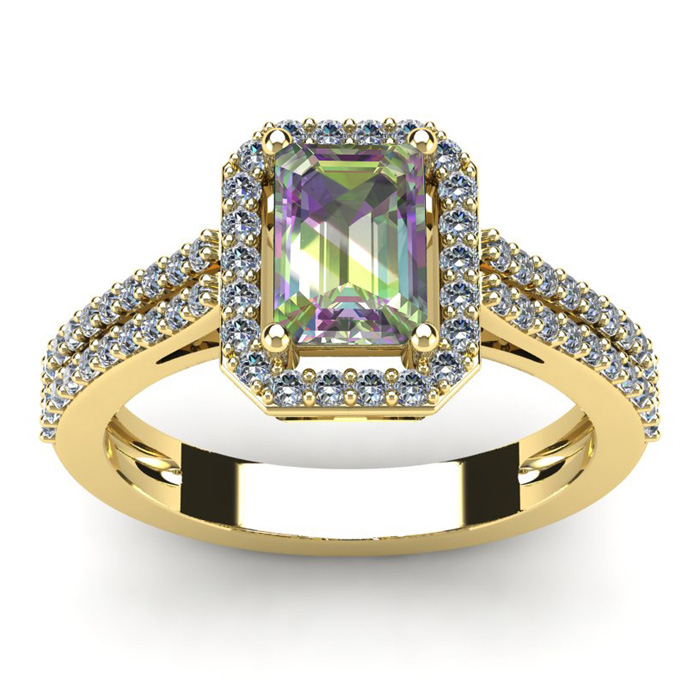 1-1/3 Carat Octagon Shape Mystic Topaz Ring With Diamond Halo In 14 Karat Yellow Gold