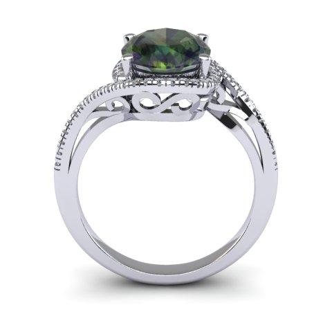 1-1/3 Carat Oval Shape Mystic Topaz Ring With Swirling Diamond Halo In 14 Karat White Gold