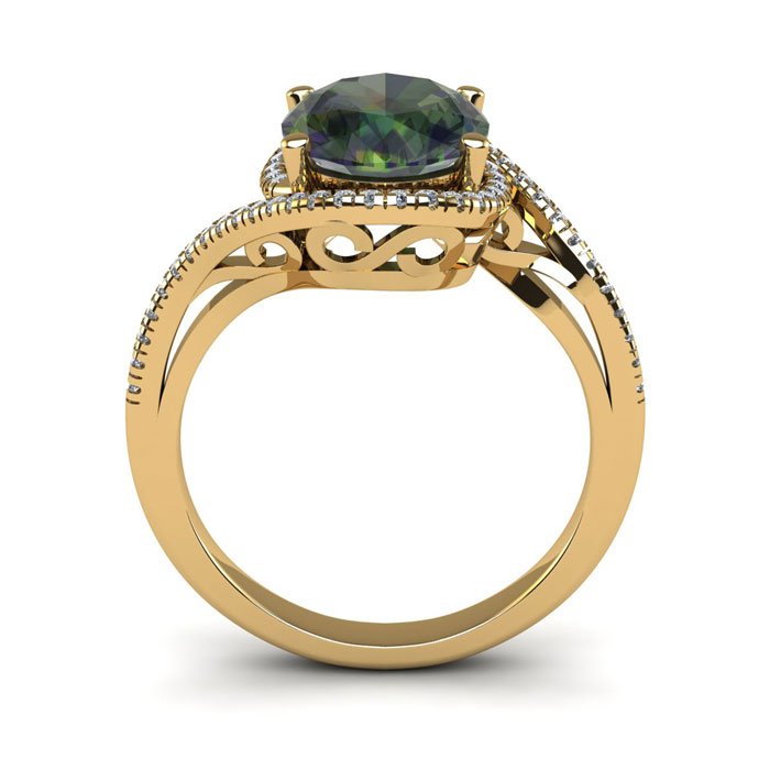 1-1/3 Carat Oval Shape Mystic Topaz Ring With Swirling Diamond Halo In 14 Karat Yellow Gold