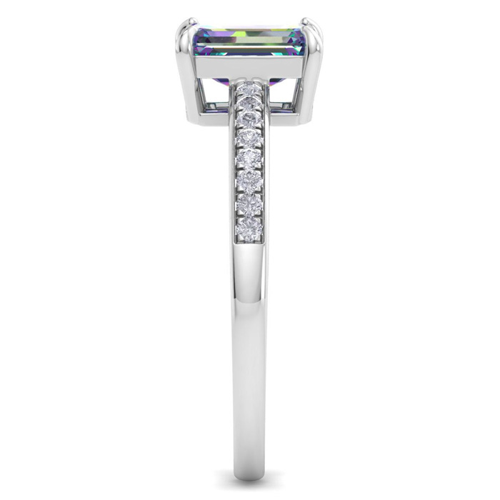 Retrograde Birthstones™ 1-1/4 Carat Octagon Shape Mystic Topaz Ring and Diamonds In 14 Karat White Gold