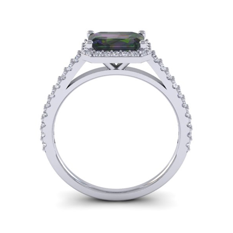 1-1/4 Carat Octagon Shape Mystic Topaz Ring With Diamond Halo In 14 Karat White Gold