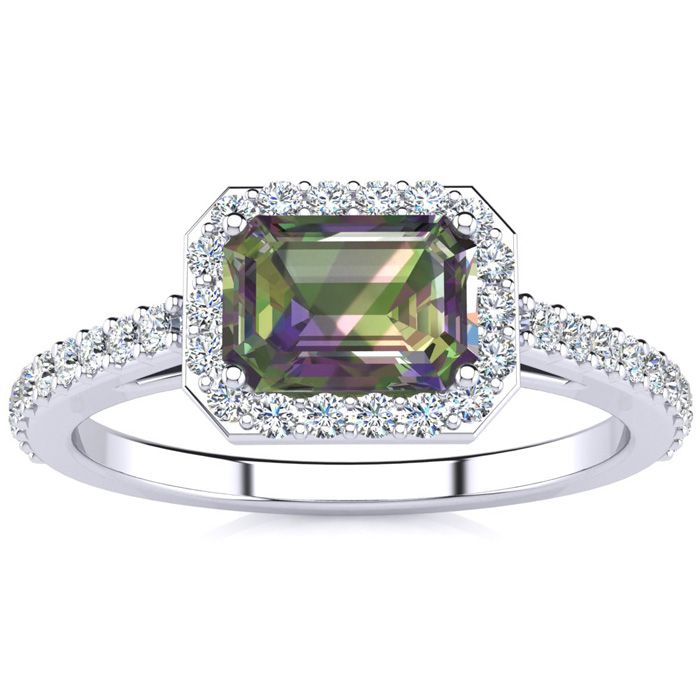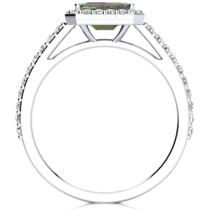 1-1/4 Carat Octagon Shape Mystic Topaz Ring With Diamond Halo In 14 Karat White Gold