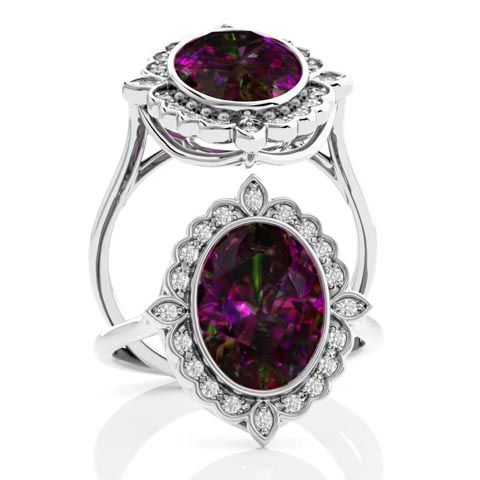 1-1/4 Carat Oval Shape Mystic Topaz Ring With Diamond Halo In 14 Karat White Gold