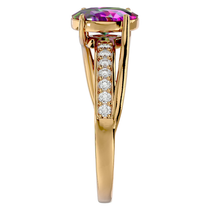 1-1/4 Carat Oval Shape Mystic Topaz Ring With Diamonds In 14 Karat Yellow Gold