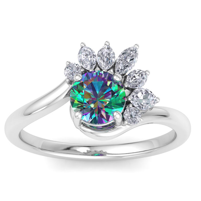 Retrograde Birthstones™ 1-1/4 Carat Round Shape Mystic Topaz Ring With Marquise Crown In 14 Karat White Gold
