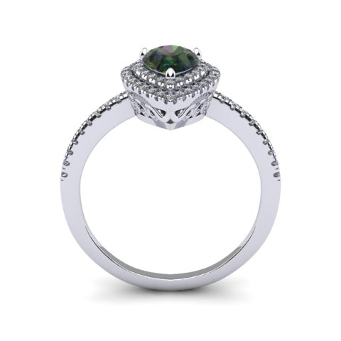 1-1/5 Carat Pear Shape Mystic Topaz Ring With Double Diamond Halo In 14 Karat White Gold