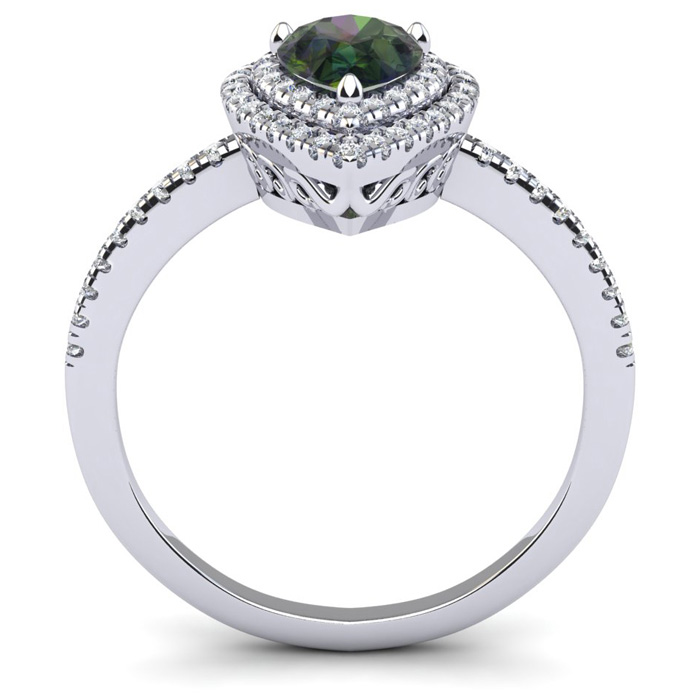 1-1/5 Carat Pear Shape Mystic Topaz Ring With Double Diamond Halo In 14 Karat White Gold