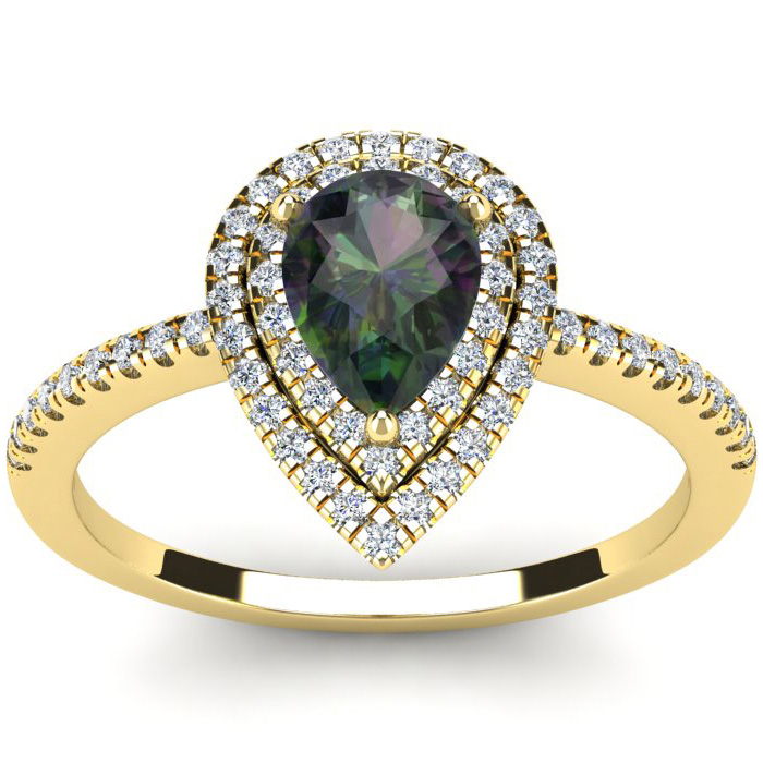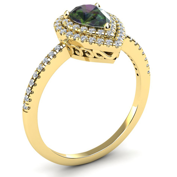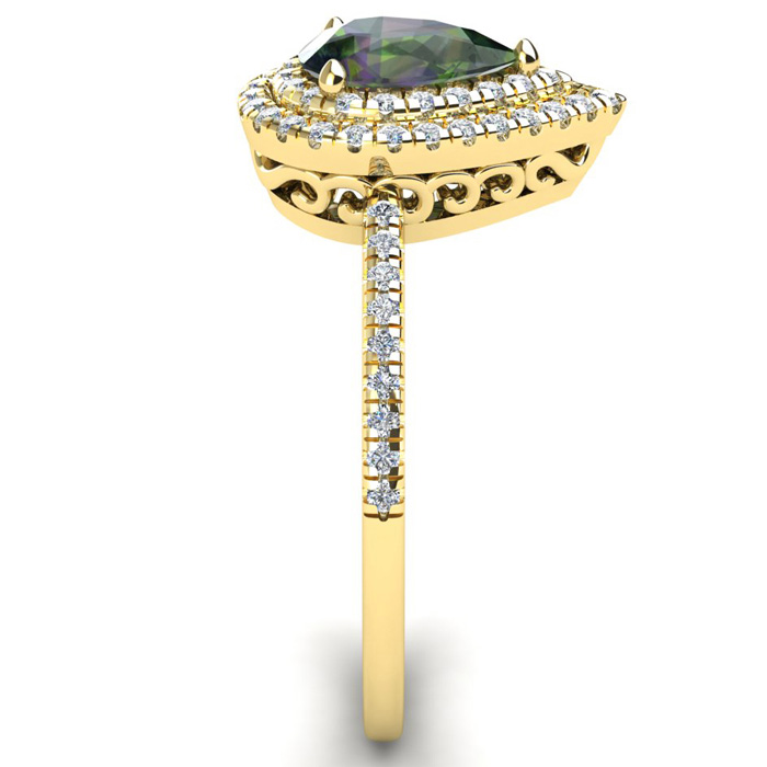 1-1/5 Carat Pear Shape Mystic Topaz Ring With Double Diamond Halo In 14 Karat Yellow Gold
