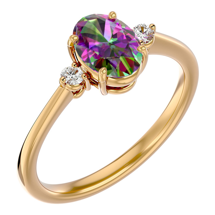 1-1/7 Carat Oval Shape Mystic Topaz Ring and Two Diamonds In 14 Karat Yellow Gold