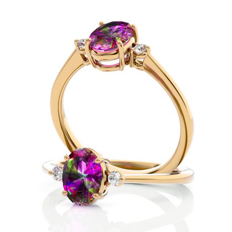 1-1/7 Carat Oval Shape Mystic Topaz Ring and Two Diamonds In 14 Karat Yellow Gold